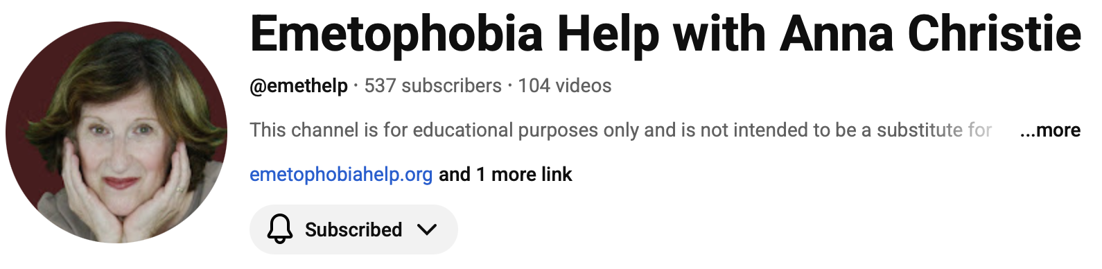 Written by a therapist and a client, walking through the journey to overcoming the phobia. Widely respected in the emetophobia podcast world.